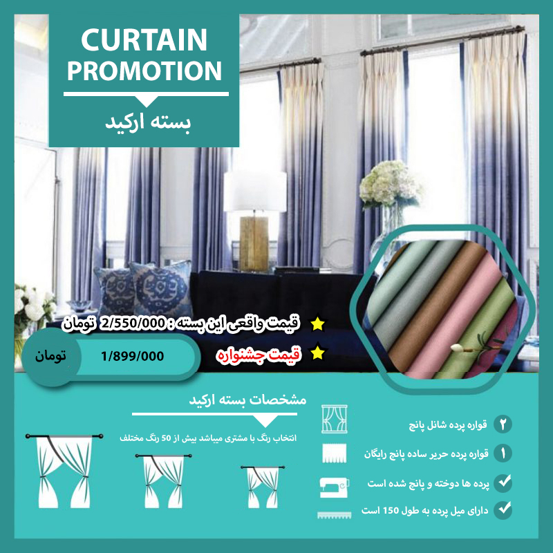 نمایش بیشتر**این بسته هدیه شامل موارد زیر است ** 2 قواره پرده پانچ شانل با دوخت...